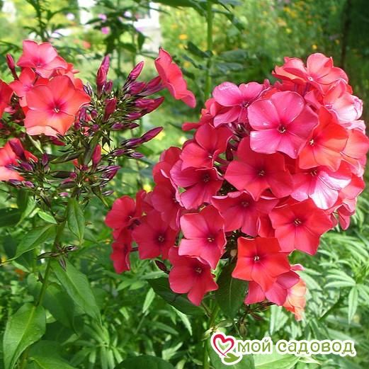 Читать далееДушистые гроздья соцветий лососево-оранжевого цвета с маленькой бордовой серединкой полностью соответствуют своему названию Оранж Перфекшен – солнечно-оранжевое совершенство. Несомненно, эти яркие цветы, благодаря контрасту с зеленью листьев, привлекут к себе внимание и станут ярким украшением в любом саду. Orange Perfection цветет довольно продолжительно в июле-августе. Купить саженцы флокса Оранж Перфекшен стоит для оформления миксбордеров и цветников, сорт великолепно смотрится рядом с монардами, тысячелистниками, дельфиниумами, лилейниками. Сорт неприхотлив и морозостоек, на зиму побеги обрезают на высоту 10 см.