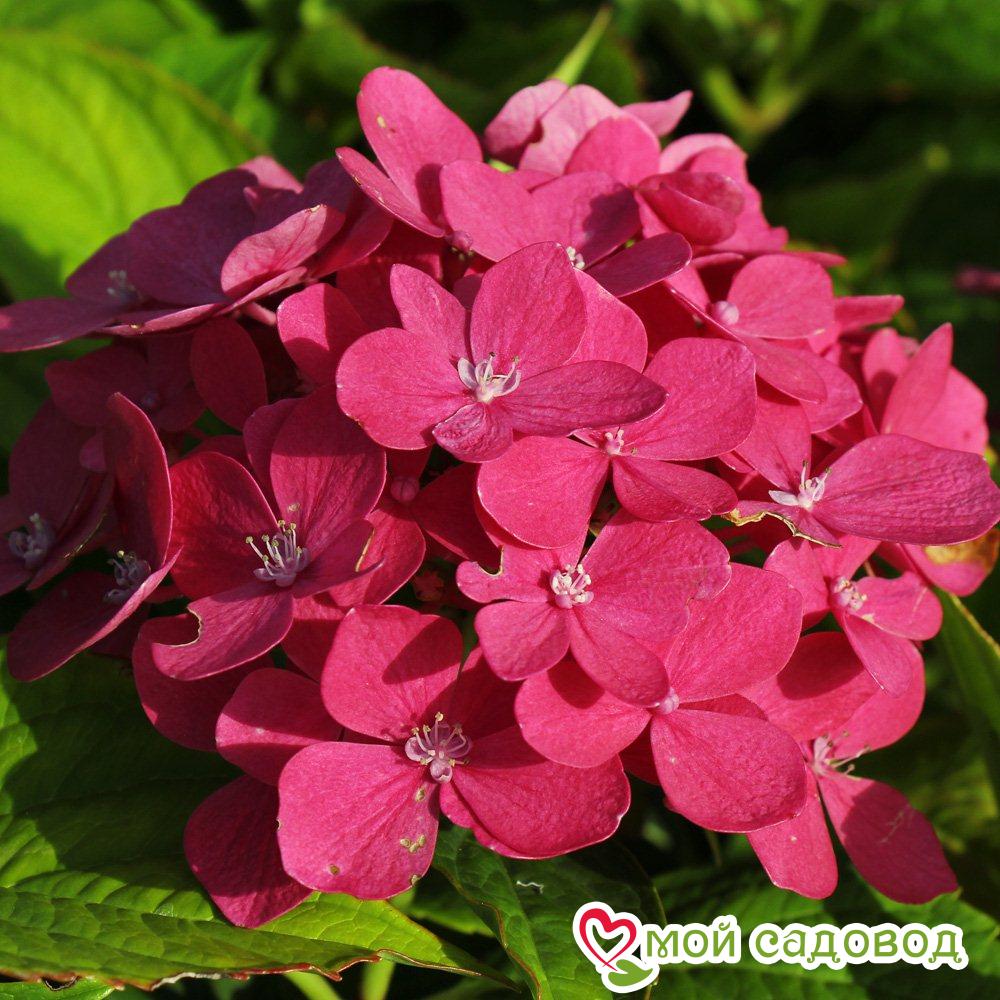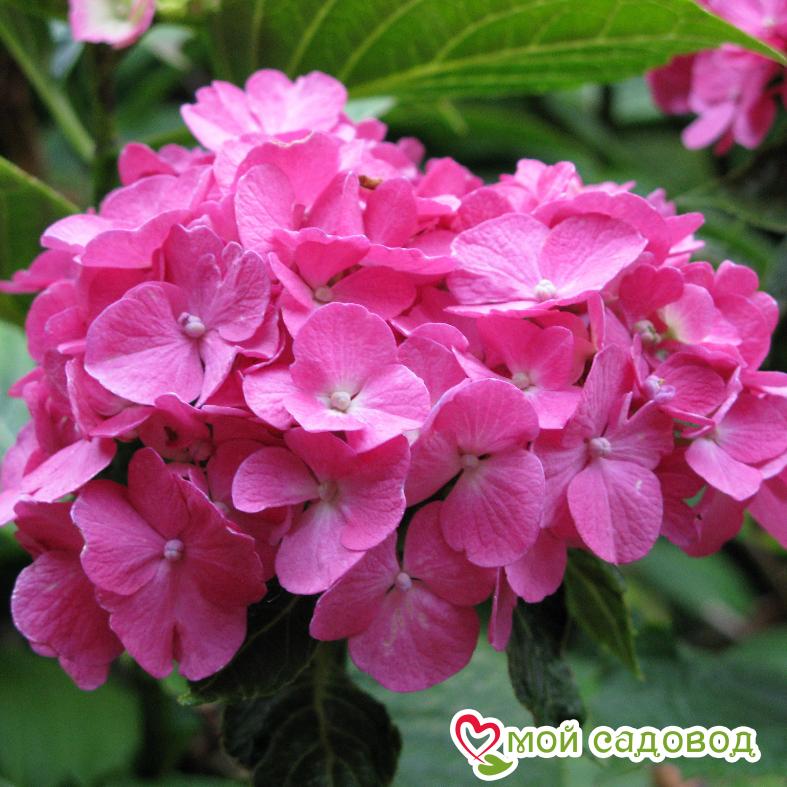 Гортензия крупнолистная Мини Хорнли – небольшой куст, которые отлично смотрится в горшках, высота взрослого куста до 70 см., диаметр шаровидных соцветий 15 см. Выбирайте не ветреное место для гортензии, в зимний период, лучше перенести кустарник в более теплое помещение. Цвет лепестков цветоноса зависит от почвы, цвет может меняться от нежно-розового до насыщенного красно-розового. Рекомендации к уходу: Гортензия цветет на прошлогодних побегах, поэтому обрезка не рекомендуется; под зиму срезают соцветия, весной вырезают только погибшие или очень старые ветви.