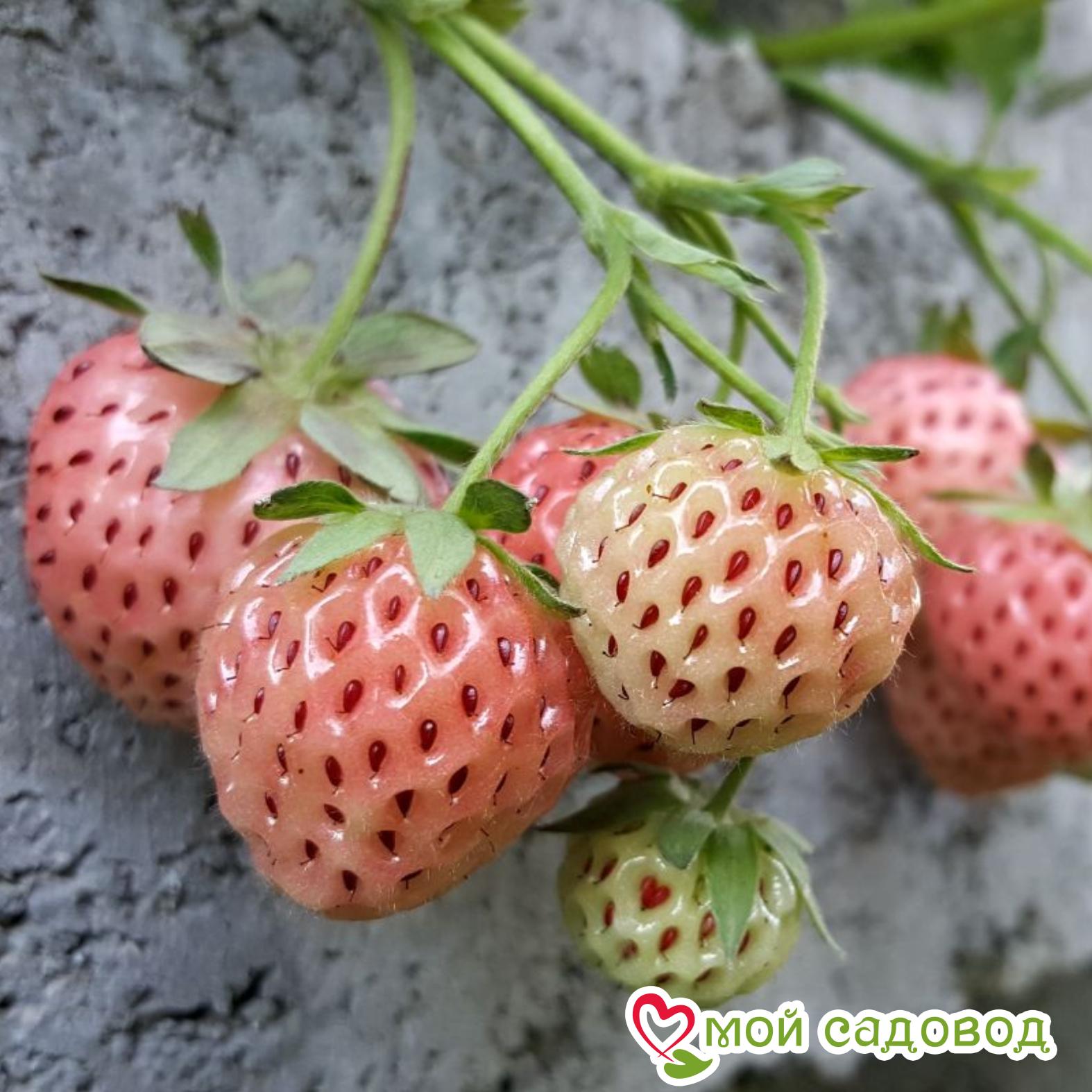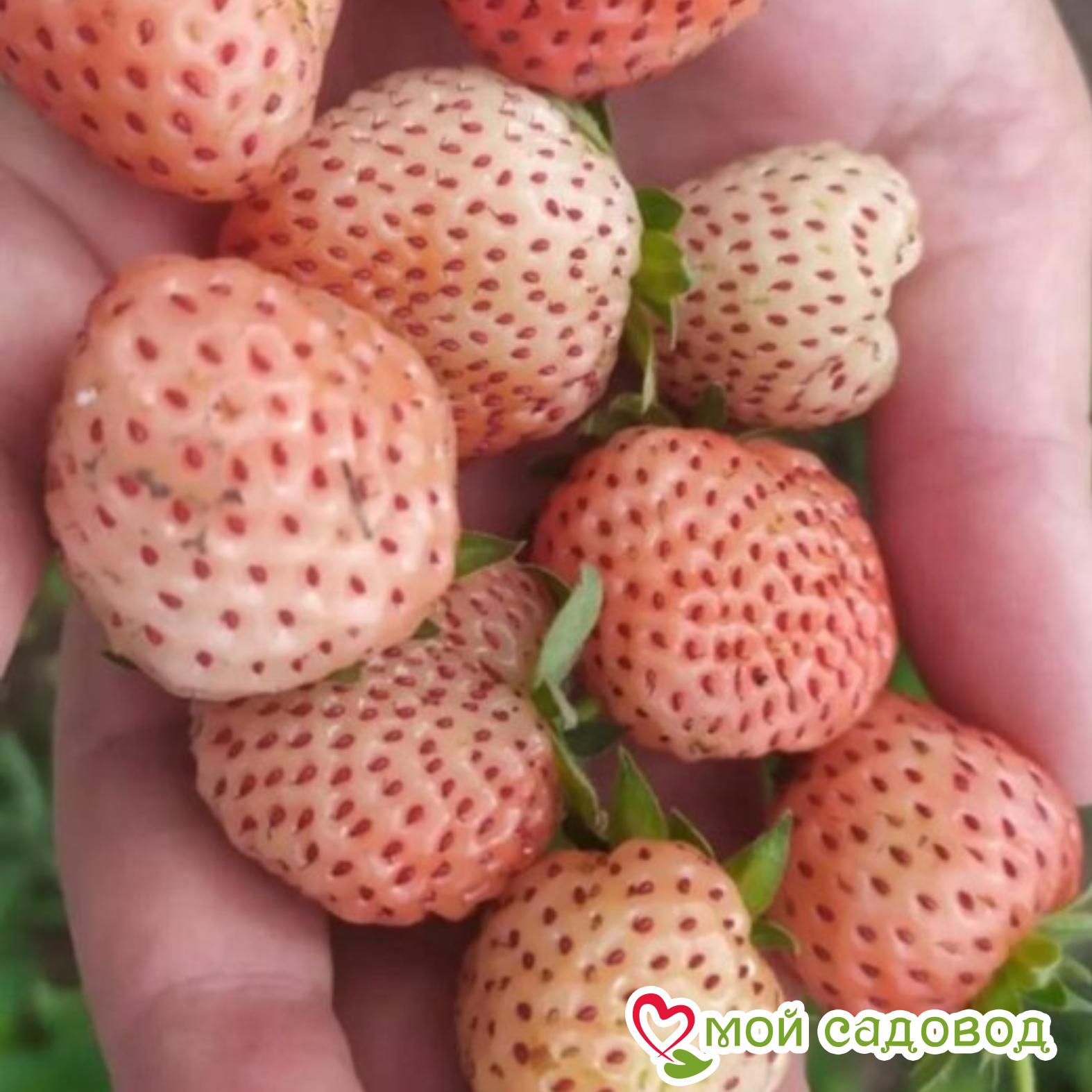 Ягоды имеют необычный белоснежный окрас, с приятным розовым оттенком. Плоды средних размеров, но очень вкусные, с ноткой ананаса. Мякоть невероятно нежная, поэтому сорт не выносит транспортировки на длительные расстояния. Требователен к солнцу. Подходит для людей, у которых есть аллергия к обычным сортам.